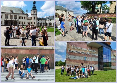 W dniu 5 czerwca 2024 uczniowie klas IV-VIII wybrali się na wycieczkę w Góry Świętokrzyskie. Pierwszym punktem wyjazdu była wizyta w Centrum Nauki Leonardo Da Vinci w Chęcinach. Główną ideą działania centrum jest wzbudzenie zainteresowania wśród zwiedzających naukami przyrodniczymi poprzez aktywne i kreatywne działania edukacyjne. Następnie wycieczka udała się do Kielc, gdzie zwiedzaliśmy Pałac Biskupów Krakowskich, rynek i z daleka Rezerwat Przyrody Kadzielnia. Ostatnim etapem naszej wycieczki była wizyta w Jaskini Raj. Wyróżnia się ona wyjątkowo bogatą, różnorodną i dobrze zachowaną szatą naciekową. Wycieczka była bardzo udana i wszyscy uczestnicy w godzinach wieczornych wrócili zadowoleni do domu.