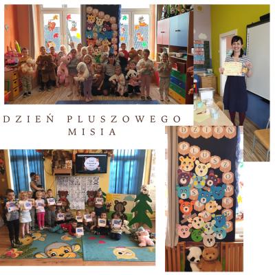 Dzień Pluszowego Misia to szczególny dzień, podczas którego dzieci, rodzice i nauczyciele poświęcają czas, aby w różnorodny sposób uczcić pluszową maskotkę – misia. Ciekawe święto przypada na listopad i co roku obchodzi się je w tym samym dniu, a mianowicie 25 listopada. W naszym przedszkolu dzieci obchodziły ten dzień 24 Listopada. Ten dzień należał do wyjątkowych, ponieważ oprócz zabaw, konkursów, tańców i quziów odbyły się inne działania związane z pluszowym misiem, a także warsztaty mydlarskie zorganizowane i przeprowadzone przez p. Katarzynę Tul. Grupa młodsza w czasie warsztatów odlewała swoje mydełka w kształcie misiów, a grupa starsza przygotowała mydełka świąteczne, które przekazała na tegoroczny kiermasz Bożonarodzeniowy. Przedszkolaki otrzymały dyplom od p.Kasi oraz ofiarowały w podziękowaniu kartki i aniołka drewnianego. Grupa młodsza połączyła ten dzień z działaniami z projektu pt.”Kreatywne dni nietypowe”, a w grupie starszej zorganizowano konkurs plastyczny pt.”Mój przyjaciel miś”. Konkurs został rozstrzygnięty w radosnej atmosferze, ponieważ starania dzieci zostały docenione zajęciem przez dzieci pierwszego miejsca. Dzieci otrzymały nagrody a każdy z nich będzie pamiętał ten dzień jeszcze przez dłuższy czas. Serdecznie dziękujemy p.Kasi Tul za warsztaty mydlarskie oraz wszystkim rodzicom za zaangażowanie.