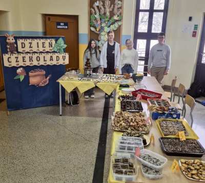 Był to dzień pełen słodkości, śmiechu i rywalizacji! Samorząd Uczniowski zorganizował Dzień Czekolady, w czasie którego uczniowie: dowiedzieli się jak powstaje czekolada i jakie są zalety jedzenia gorzkiej czekolady, rywalizowali w konkursie na rozpoznawanie smaków czekolady oraz w konkursie klasowym na najlepsze czekoladowe smakołyki, kosztowali płynnej czekolady z fontanny, szukali czekoladowych prezentów i rozwiązywali czekoladowe łamigłówki.