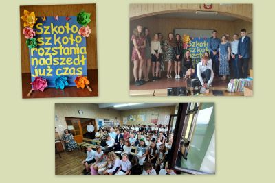W ostatnim dniu roku szkolnego 2022/23 klasa VIII podziękowała Pani Dyrektor, wszystkim nauczycielom, pracownikom i młodszym kolegom za wspólnie spędzone lata w swojej pierwszej szkole. Na uroczystości obecni byli Ksiądz Proboszcz Norbert Matuszek i zastępca Burmistrza Pan Michał Tul. Absolwentom towarzyszyli również Rodzice. Spotkanie było podniosłe i wzruszające.