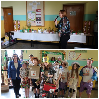 W dniu dzisiejszym uroczyście obchodziliśmy Dzień Ziemi. Na apelu organizatorzy tego dnia Pani Weronika, Pani Maria oraz Pani Asia przedstawiły najważniejsze fakty, cel i założenia święta naszej planety obchodzonego na całym świecie od 1970 roku. My, jako szkoła, bardzo aktywnie zaangażowaliśmy się w te obchody. Klasy I-III wraz z wychowawcami przygotowały samodzielnie sadzonki kwiatów, warzyw, ziół w specjalnie na tą okazję zaprojektowanych, ekologicznych doniczkach. Klasy starsze zmierzyły się w pokazie mody eko. Stroje zostały wykonane z tzw. odpadów do recyklingu- papieru, kartonów, folii oraz opakowań po produktach spożywczych. Jury w składzie Pani Dyrektor , Pani Maria i pani Asia mieli trudne zadanie, gdyż pomysłowość uczniów sięgnęła zenitu. Tegoroczny Dzień Ziemi obchodzono pod hasłem " Zainwestuj w swoją planetę". No i my właśnie zainwestowaliśmy swoje pomysły, pracę i zaangażowani.