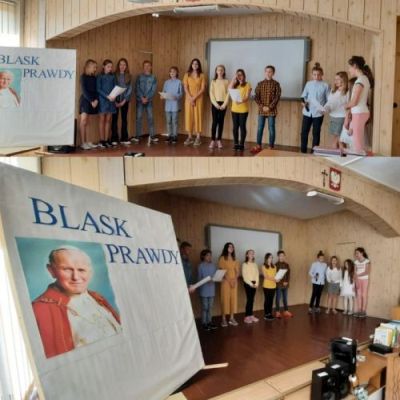 W poniedziałek 17.10 obchodziliśmy XXII Dzień Papieski, który w tym roku był świętowany pod hasłem „Blask Prawdy”. Z tej okazji przygotowaliśmy przedstawienie oraz zorganizowaliśmy zbiórkę charytatywną na rzecz Dzieła Nowego Tysiąclecia.