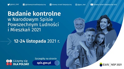 Od 12 do 24 listopada 2021 r. zostanie przeprowadzone badanie kontrolne. Jego celem jest ocena jakości danych pozyskanych w Narodowym Spisie Powszechnym Ludności i Mieszkań 2021. Jego wyniki umożliwiają również udoskonalanie przyszłych spisów i badań reprezentacyjnych, dlatego udział w badaniu kontrolnym jest równie ważny, jak w samym Spisie Powszechnym.