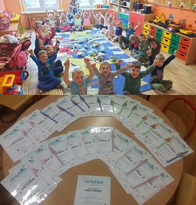 Przedszkolaki z grupy „0” uczestniczyły w eksperymentach związanych z ogniem, wodą, ziemią i powietrzem, wykonały prace plastyczne na każdy z wymienionych tematów. Serdecznie dziękujemy komisji konkursowej Biedronka za wyróżnienie naszych działań. Mamy nadzieję, że dzięki wygranej nasza placówka będzie bardziej ekologiczna, tak jak uczyły nas zajęcia z Fajniakami.