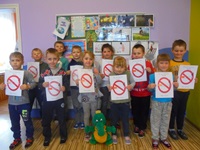 W kwietniu przedszkolaki z grupy starszej realizowały program pod hasłem: „Czyste powietrze wokół nas” opracowany przez Główny Inspektorat Sanitarny Departamentu Zdrowia Publicznego i Promocji Zdrowia, a poparty przez: Ministerstwo Edukacji Narodowej, Rzecznika Praw Obywatelskich oraz Stowarzyszenie na Rzecz Dzieciństwa Wolnego od Tytoniu.