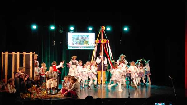 31 marca 2026 roku uczniowie klasy IV, wspólnie z grupą starszaków z oddziału przedszkolnego, wzięli udział w XII Dobrodzieńskich Konfrontacjach Teatralnych. Na podstawie scenariusza „Gaik – zielona tradycja” autorstwa mgr Joanny Kłopotowskiej młodzi aktorzy zaprezentowali barwną historię zwyczaju chodzenia z Gaikiem. Młodsze dzieci, z grupy starszaków, wprowadziły widzów w świąteczny nastrój, składając wielkanocne życzenia oraz tańcząc choreografię przygotowaną przez Panią Jolantę Koj. Na zakończenie występu artyści wyszli do publiczności i wręczyli symboliczne gałązki oraz kartki z życzeniami. Z dumą informujemy, że ich występ został wyróżniony! Serdeczne podziękowania kierujemy również do Rodziców, którzy wsparli przygotowania do występu, a także wystąpili razem z dziećmi na scenie. Państwa zaangażowanie, pomoc i obecność są dla nas niezwykle cenne – dziękujemy za wspólne tworzenie tego wyjątkowego wydarzenia.