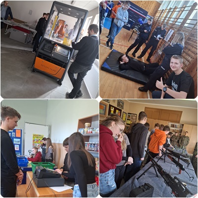 Dni otwarte w Zespole Szkół w Dobrodzieniu były świetną okazją, by poznać szeroką ofertę edukacyjną tej szkoły. Ósmoklasiści zapoznali się z propozycjami kształcenia w szkole mundurowej, medialno-prawnej, techników robotyki, handlu oraz różnych branż zawodowych. Prezentacje były ciekawe i angażujące, a uczniowie mieli okazję zobaczyć, jak wygląda nauka w praktyce. W trakcie wydarzenia odbyło się także spotkanie z policjantami, którzy opowiedzieli o swojej pracy, a uczestnicy mogli spróbować swoich sił na policyjnym torze przeszkód. Pokazom towarzyszył poczęstunek. Na zakończenie uczniowie otrzymali drobne upominki. Dni otwarte pomogły uczniom lepiej poznać swoje możliwości edukacyjne i podjąć świadomą decyzję o wyborze przyszłej szkoły.