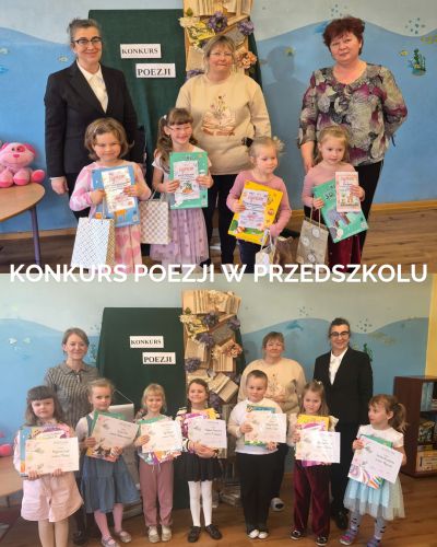 Poezja w przedszkolu odgrywa istotną rolę w rozwijaniu wyobraźni, języka i emocji małych dzieci. Wprowadzenie w świat poezji to doskonały sposób, by wspierać rozwój intelektualny i społeczny maluchów. Wiersze, rymowanki i piosenki pobudzają ich ciekawość, uczą rytmu, melodyki oraz dźwięków języka. Warto także zauważyć, że wiersze często pomagają w rozwiązywaniu problemów emocjonalnych, uczą współpracy i szacunku do innych. Wspólne recytowanie wierszy, tworzenie własnych rymowanek czy przedstawianie krótkich scenek teatralnych rozwija umiejętności społeczne oraz kreatywność. Z tej okazji, 20 marca 2025 roku, w naszym przedszkolu odbył się wyjątkowy konkurs recytatorski, w którym dzieci miały szansę zaprezentować swoje umiejętności w recytowaniu ulubionych wierszy. Konkurs był świetną okazją do rozwijania pasji literackich, a także do budowania pewności siebie i integracji w grupie. W grupie starszej siedmioro dzieci zaprezentowało się w wybranych przez nie wierszach, a w grupie młodszej czworo uczestników. W głosowaniu przez Jury pierwsze miejsce zajęła Magdalena Sz. z grupy starszej oraz w grupie młodszej przyznano dwa pierwsze miejsca : Alicja P. oraz Julia M. W Dobrodzieniu reprezentować Nas będą: Magdalena Sz. oraz Alicja P. Wszyscy mali uczestnicy zasługują na ogromne brawa za odwagę i zaangażowanie!