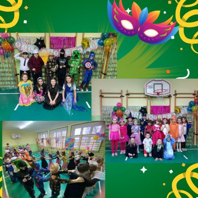 Karnawał zgodnie z tradycją to czas zabaw, balów maskowych, radości i wspólnej rozrywki. W naszej szkole również dochowano wierności tradycji i w dniu 31.01.2025r. odbył się Bal Karnawałowy dla uczniów klas I-III. Tego dnia dzieciom towarzyszyło wiele emocji i wrażeń. Sala gimnastyczna wyglądała inaczej niż na co dzień, zamieniła się w prawdziwą salę balową. Udekorowana kolorowymi balonami, serpentynami i łańcuchami zachęcała do wspólnej zabawy. W dniu balu uczniowie zamienili się w księżniczki, czarownice, koty, anioły, policjantów, piłkarzy, szkielety, syreny, super bohaterów i wiele innych ciekawych postaci ze świata bajek. W każdej klasie zostały przeprowadzone różnorodne konkursy, gry i zabawy przy muzyce. W trakcie przerwy dzieci miały czas na słodki poczęstunek oraz wykonanie sobie pamiątkowych zdjęć w karnawałowych przebraniach. Tegoroczny bal karnawałowy należał do udanych. Pełne radości i uśmiechu zabawy na długo pozostaną w pamięci uczniów.