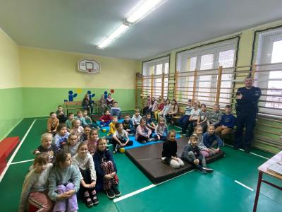 Dbając o bezpieczeństwo naszych uczniów w czasie zbliżających się ferii zimowych, 21stycznia odbyło się spotkanie profilaktyczno-edukacyjne z funkcjonariuszami policji dla uczniów kl. I-VIII. Podczas prelekcji policjanci przypomnieli o zagrożeniach mogących pojawić się w trakcie ferii zimowych. Szczególnie skupili się na omówieniu z uczniami zasad bezpieczeństwa podczas uprawiania sportów zimowych i zabaw na świeżym powietrzu. Przestrzegali przed ślizganiem się na skutych lodem rzekach i stawach oraz ostrzegali przed zjeżdżaniem z górek znajdujących się blisko ulic i rzek. Funkcjonariusze udzielili wskazówek jak bezpiecznie bawić się na śniegu i jak zachowywać się na kuligu. Przeprowadzone spotkanie zakończono dyskusją na temat bezpieczeństwa uczniów w domu, szkole, na drodze. Policjanci zakończyli spotkanie życząc nam bezpiecznych i udanych ferii zimowych.