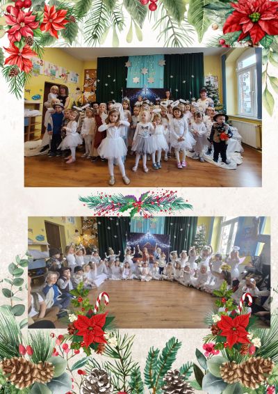 Święta Bożego Narodzenia są najbardziej rodzinnymi i ciepłymi świętami, pozwalającymi poczuć serdeczność i miłość wszystkich wokół. Zarówno dzieci jak i dorośli z niecierpliwością oczekują ich nadejścia. Ten magiczny czas, tę piękną atmosferę daje się odczuć również w naszym przedszkolu. Kolejny raz w przedświątecznym tygodniu obydwie grupy wiekowe sprawiły radość swoim bliskim przedstawieniem jasełkowym. W tym roku w uroczystych Jasełkach wzięli udział : Rodzice. Pani Dyrektor oraz Ksiądz Proboszcz. Co roku „Jasełka” mają inną, niepowtarzalną oprawę artystyczną. Przedszkolaki ku radości swoich rodziców, w pięknych strojach przedstawiały historię narodzin Dzieciątka Jezus uświetnioną nowoczesnymi kolędami ,pastorałkami i tańcami. Przepiękna, nowa scenografia , nadała temu wyjątkowemu spotkaniu uroczysty i nastrojowy klimat. Przedstawienie było wyjątkowe. Dzieci z dużym zaangażowaniem odgrywały swoje role i przeżywały magię Bożego Narodzenia. Mali aktorzy zaprezentowali swoje talenty, które na koniec nagrodzone zostały gromkimi brawami. Po zakończonych występach przy blasku świec i lampionów nie zabrakło również dzielenia się opłatkiem i składania sobie życzeń. To wszystko sprawiło, że naprawdę poczuliśmy atmosferę zbliżających się Świąt Bożego Narodzenia.