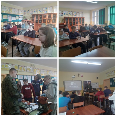 W czwartek 19 lutego 2026 roku, w naszej szkole odbyło się spotkanie uczniów klasy siódmej i ósmej z przedstawicielem Wojskowego Centrum Rekrutacji w Opolu, zorganizowanym w ramach ogólnopolskiego projektu informacyjnego pt.: „Zawód żołnierz”. Młodzież miała okazję poznać specyfikę pracy żołnierza, a także ścieżki rozwoju zawodowego związane ze służbą wojskową.