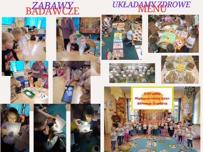 W oparciu o całotygodniowy temat związany ze zdrowiem w grupie młodszej podsumowaniem był uroczyście obchodzony :Międzynarodowy Dzień Zdrowego Śniadania, który przypada corocznie 8 listopada. Celem tej uroczystości było: zwiększenie świadomości najmłodszych w kwestii prawidłowego odżywiania, ze szczególnym uwzględnieniem śniadania. Przedszkolaki wysłuchały opowiadań J.M Chmielewskiej pt:”Jak wygląda zdrowie” i „ Babcia hoduje zdrowie”. Wykonały zadania interaktywne :”Zdrowe menu”. Tańczyły do piosenki: ”Przepis na zdrowie”. Odbyły się także zajęcia badawcze z mydłem i zabawa edukacyjna: ”Czarodziejskie rączki ‘ z wykorzystaniem latarki w ciemnościach sali. Wszystkie te doświadczenia przyniosły dzieciom wiele radości ale głównie dostarczyły im niezbędnej wiedzy nt zdrowego stylu życia. Dzieci wykonały także pracę plastyczną z użyciem plastikowych buteleczek :”Mój zdrowy ząbek”. Na zakończenie wszyscy mogli degustować się zdrowymi przekąskami przygotowanymi przez naszych rodziców.