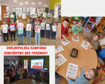 Kampania Dzieciństwo bez Przemocy ma na celu przeciwdziałanie przemocy wobec dzieci w Polsce. Składają się na nią ogólnopolskie i lokalne działania edukacyjne oraz medialne. Przez cały tydzień prowadzone są w grupie starszaków zajęcia w ramach profilaktyki oraz w ramach wprowadzania procedur ochrony małoletnich.
