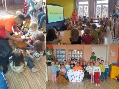 W dniu 15.10.2024 dzieci z grupy starszaków przywitały długo wyczekiwanego gościa – ratownika medycznego. Zaproszony gość przekazał dzieciom wiedzę, która jest bardzo ważna dla każdego człowieka. Pierwsza pomoc, to temat, który przekazany już od najmłodszych lat, pozwala na to, że jesteśmy świadomi i potrafimy działać. Ratownik medyczny w przyjazny i ciekawy sposób pokazał na czym polega pierwsza pomoc. Dzieci miały możliwość, by wcielić się w rolę ratownika medycznego, ale i nie tylko, ponieważ by uratować komuś życie nie trzeba być ratownikiem, wystarczy posiadać odpowiednią wiedzę. Dzieci poznały również pracę ratownika medycznego w ramach doradztwa zawodowego oraz dodatkowo świętowały Dzień Ratownictwa Medycznego obchodzony 13 października. Starszaki zapamiętają ten dzień na długo, gdyż otrzymały od wychowawczyni zadanie domowe. Zadaniem dzieci, było udzielenie pierwszej pomocy swoim najbliższym. Meldujemy, że zadanie wykonali wszyscy w sposób przekraczający Nasze najśmielsze wyobrażenia.