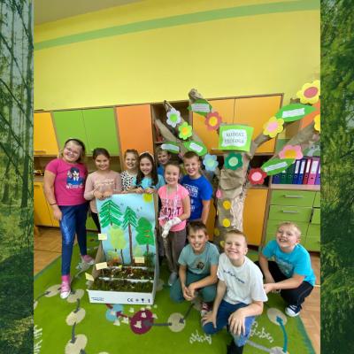 W bieżącym roku szkolnym uczniowie klasy trzeciej biorą udział w innowacji pedagogicznej, pt. „Z ekologią na Ty”, która realizowana jest na zajęciach ekologicznych. Wszystkie działania projektowe mają na celu podniesienie świadomości ekologicznej, a także uwrażliwienie na ochronę środowiska naturalnego. Podczas zajęć warsztatowych dzieci w praktyczny sposób poznają środowisko naturalne oraz uczą się jak należy o nie dbać. Uczniowie w trakcie prac zespołowych tworzą ciekawe prace, które później mogą posłużyć jako pomoce dydaktyczne w dalszej nauce. We wrześniu stworzyli drzewko ekologa, które zwiera zasady jakimi powinien się kierować prawdziwy ekolog, a także stworzyli piętrową budowę lasu w kartonie. Zadania te dzieci wykonywały z wielką radością i zaangażowaniem. Z niecierpliwością czekają na kolejne zadania.