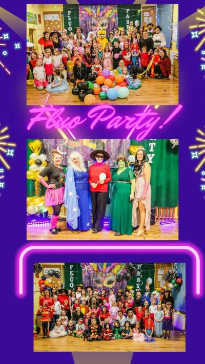 Tak długo oczekiwane przez dzieci „fluo party” w przedszkolu w końcu nadeszło. Dnia 30 stycznia 2026r. późnym popołudniem spotkaliśmy się w przedszkolu, aby rozpocząć wspólną zabawę. Był to nietypowy wieczór ponieważ w przedszkolu zgromadziły się nie tylko dzieci ,lecz także Rodzice, Nauczyciele waz z panią Dyrektor na czele oraz cały Personel naszego przedszkola. W przepięknej karnawałowej scenografii dzieci pod kierunkiem pani animator rozpoczęły swoją przygodę a zarazem wspaniałą zabawę.