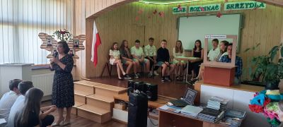 21 czerwca 2024 o godzinie 8.15 dla wszystkich uczniów zabrzmiał ostatni dzwonek w tym roku szkolnym. W auli rozpoczęła się część oficjalna uroczystości, na którą przybyli: Zastępca Burmistrza Dobrodzienia mgr Radosław Kulesza, nauczyciele, pracownicy obsługi i administracji, przedstawiciele Rady Rodziców, uczniowie oraz rodzice zarówno absolwentów, jak i pozostałych uczniów. Wszystkich zebranych gorąco powitała Pani Dyrektor Dorota Krawiec. W krótkich słowach podziękowała za dziesięciomiesięczny trud, który zaowocował licznymi sukcesami. Absolwentom życzyła, by dalsza edukacja przyniosła im spełnienie marzeń. Zaznaczyła, że drzwi szkoły zawsze będą dla nich otwarte. Słowa wdzięczności skierowała również do wszystkich przybyłych, dziękując za ogromne zaangażowanie i współpracę. Odczytała najważniejsze fragmenty listu Opolskiego Kuratora Oświaty, skierowane do placówki. Po wręczeniu nagród, wyróżnień oraz listów gratulacyjnych głos zabrał Zastępca Burmistrza. Podziękował nauczycielom, rodzicom oraz wszystkim pracownikom. Pogratulował osiągnięć. Życzył udanych i bezpiecznych wakacji oraz niezapomnianych wrażeń. Całej uroczystości towarzyszył program artystyczny, który budował nastrój i niejednokrotnie wyciskał z oczu łzy wzruszenia absolwentów oraz ich wychowawczyni. Klasa siódma pożegnała, w ten sposób, starszych kolegów a klasa ósma podziękowała za wszystkie starania włożone w ich edukację i wychowanie.
