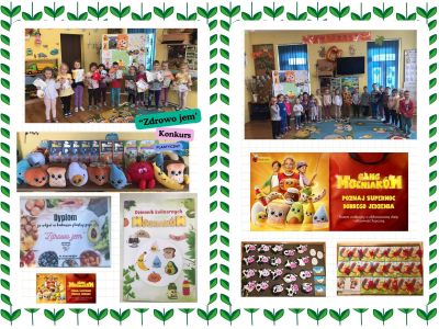 Jeronimo Martins Polska SA., właściciel sieci sklepów Biedronka, ponownie angażuje się w edukacyjną inicjatywę skierowaną do dzieci, która wspiera ich rozwój i pomaga wypracować właściwe nawyki, które zaowocują w dorosłym życiu. Do udziału w programie edukacyjnym „Szkolne Przygody Gangu Mocniaków - Poznaj supermoc dobrego jedzenia” włączyła się grupa: ”Wiewióreczki „która zaraz po okresie świątecznym rozpoczęła realizację programu. Celem tegorocznego programu było przekazanie dzieciom wiedzy na temat roli składników odżywczych w diecie oraz zachęcenie ich do jedzenia różnorodnych i zbilansowanych posiłków zgodnie z zasadami talerza zdrowego żywienia. W podejmowaniu najlepszych wyborów żywieniowych pomógł dzieciom Gang Mocniaków. Każdy z jedenastu różnorodnych bohaterów pokazał wartość zbilansowanego posiłku i razem udowodniły , że w pełnym składzie mogą więcej! Dzieci w oparciu o temat tygodnia: ”Na farmie’ mogły dowiedzieć się co nam daje wieś? W grupie ogłoszony został także konkurs plastyczny pod tytułem: ”Zdrowo jem”. Do konkursu przystąpiło 12 dzieci .Wspólnie z rodzicami wykonali oni pracę plastyczną , którą przynieśli do przedszkola .Wszystkie dzieci za udział w programie otrzymały od organizatora książeczki, maskotki, dzienniczki kulinarnych Mocniaków wraz z naklejkami, a dzieci biorące udział w konkursie dodatkowo otrzymały piękny dyplom od wychowawcy. Dziękujemy rodzicom za zaangażowanie się w ten program. Okazuje się że dbanie o zdrowie może być łatwe, smaczne i kolorowe.