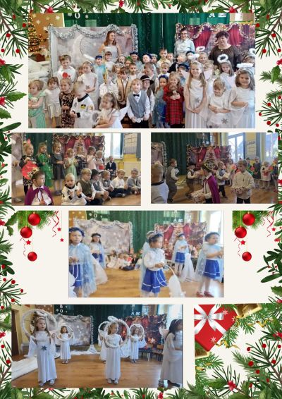 Dnia 18 grudnia br. nasza sala przedszkolna nabrała magicznej mocy ponieważ w niej spotkały się dwa światy: Niebo i Ziemia. W przepięknej scenografii nasi mali aktorzy przybliżyli przygotowania i zmagania jakie toczą ludzie i anieli aby te Święta Bożego Narodzenia mogły zabłysnąć w naszych domach i w naszych sercach. Dzieci w montażu słownym przeplatanym tańcami , pastorałkami oraz instrumentacją piosenek zapaliły iskierkę dobra i miłości wśród zgromadzonych gości.