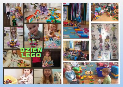 Zaraz po feriach zimowych w grupie młodszej zaczęto przygotowania do obchodów kolejnych dwóch uroczystości z naszego projektu: ”Kreatywne Dni Nietypowe”. Pierwsza uroczystość obchodzona w grupie to : Międzynarodowy Dzień Klocków Lego. Tego dnia czekało na dzieci wiele atrakcji. Na początku zapoznaliśmy się z historią powstania tych ulubionych przez dzieci klocków. Następnie odbyły się gry i konkursy sprawnościowe z wykorzystaniem mega dużych klocków lego. Dzieci segregowały klocki wg koloru, wielkości i kształtu. Były zabawy muzyczne, lego-czekoladki a także praca plastyczna z wizerunkami bohaterów lego w różnych bajkach. Dzieci z pomocą rodziców przesłały także zdjęcia z zabaw klockami lego podczas ferii zimowych. Podczas prezentacji stworzonej przez wychowawcę dzieci mogły zobaczyć siebie na dużym ekranie i opowiedzieć o swoich feryjnych przygodach z klockami . Na zakończenie tej uroczystości dzieci miały do dyspozycji i zabawy wszystkie lego, które posiadamy w przedszkolu. Oj działo się działo.