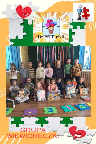 Drugą styczniową uroczystością z naszego projektu był: ”Międzynarodowy Dzień Puzzli”. Odbył się on 30 stycznia br. Rozpoczęliśmy go od wysłuchania i omówienia wiersza pt: ”Puzzle”. Następnie wkroczyliśmy w matematyczny świat z udziałem puzzli. Dzieci dobierały mega puzzle do odpowiednich kształtów na kartkach, przeliczały i manipulowały liczbami schowanymi w puzzlach, brały udział w zabawach muzycznych z udziałem puzzli. Nie zabrakło również pracy plastycznej. Dzieci stworzyły: ”Zimowe drzewka „z wykorzystaniem malowanych na biało mini puzzli. Do końca dnia wszyscy doskonale bawili się układając i tworząc przeróżne obrazy i kompozycje z puzzli. Lale i klocki poszły tego dnia odpocząć, za to wszystkie przedszkolaki z zapałem układały puzzle w małych i większych grupach. Tego dnia każdy otrzymał dyplom „Mistrza układania”, będący wspaniałą pamiątką kolejnego ciekawego wydarzenia w naszym przedszkolu.