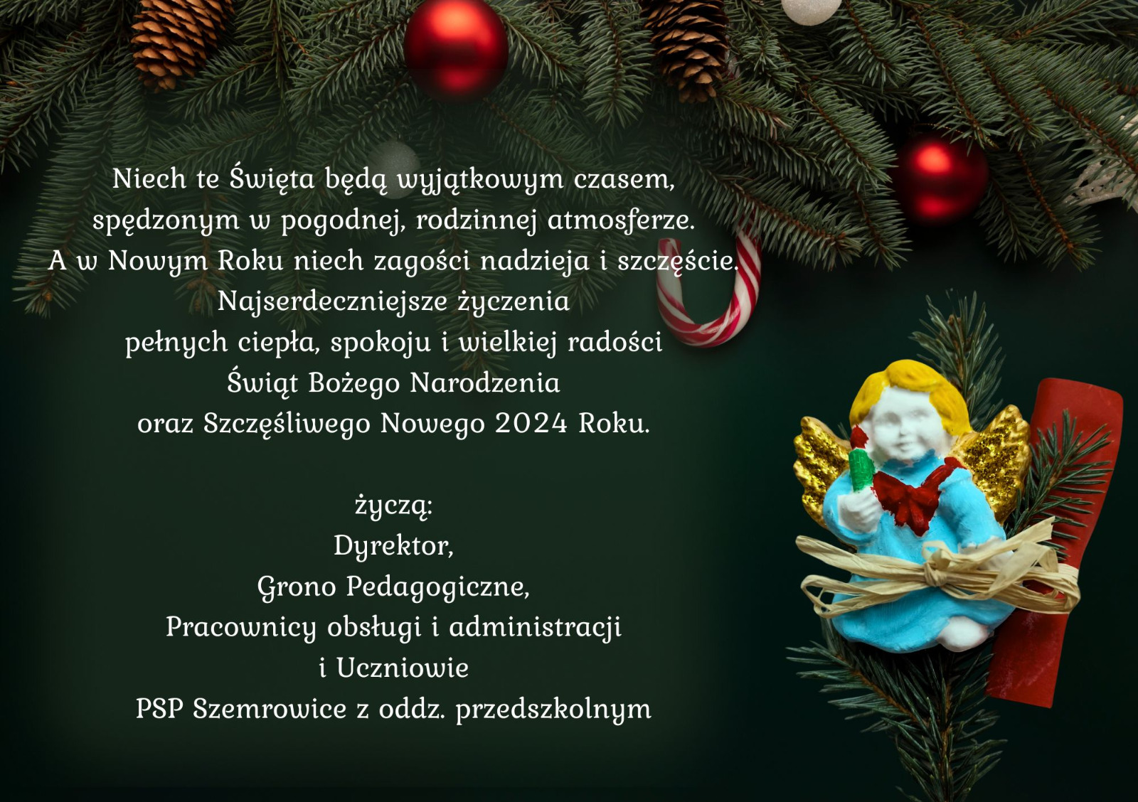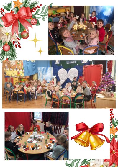 Wigilia to najbardziej uroczysty i wzruszający wieczór w roku. Wieczór, który wyzwala w ludziach ich najlepsze uczucia. Dlatego w naszym przedszkolu przeżywamy go bardzo uroczyście. Zawsze łączymy uroczystość Jasełek ze wspólną wigilią. Jednakże w tym roku choroba przedszkolaków nie pozwoliła nam na występ jasełkowy , który został przełożony. Wigilia dla dzieci jednak się odbyła i 20 grudnia dzieci przyszły do przedszkola ubrane odświętnie i zebrały się w jednej sali, która na tę okoliczność została odświętnie przygotowana. Była choinka, pięknie przystrojone stoły… Wprowadzeni w odświętny nastrój dzieliliśmy się opłatkiem, a następnie złożyliśmy sobie świąteczne i noworoczne życzenia. Były też spontaniczne życzenia dzieci dla wszystkich zgromadzonych .Przy dźwiękach kolęd i pastorałek zasiedliśmy do stołów. Dzieci smakowały pierniczków i innych smakołyków przygotowanych przez rodziców. W cudownej atmosferze Świąt Bożego Narodzenia rozmawialiśmy o świątecznych tradycjach, wigilijnych potrawach i oczywiście wspólnie kolędowaliśmy. Nie zabrakło także zagadek świątecznych zapisanych na białych śnieżynkach. Takie podniosłe chwile nie tylko utrwalają dzieciom znajomość tradycji i świątecznych zwyczajów lecz, co najważniejsze, wzmacniają bliskie relacje. Bo przedszkole przecież to drugi dom, w którym nawiązujemy przyjaźnie, czujemy się dobrze i bezpiecznie.