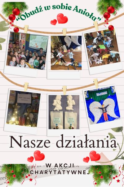 W ostatnich dniach uczniowie klasy VI, VII i VIII należący do szkolnego wolontariatu przygotowali drobne niespodzianki dla chorych osób przebywających w Samodzielnym Publicznym Zakładzie Opiekuńczo-Wychowawczym w Dobrodzieniu. Wolontariusze pomalowali zamówione aniołki, do których dołączyli życzenia z okazji zbliżających się Świąt Bożego Narodzenia. Gotowe upominki uczniowie zawieźli i wręczyli chorym przebywającym w ośrodku.