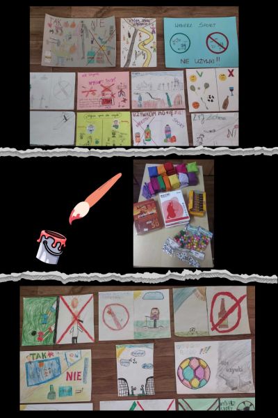 W celu zapobiegania zachowaniom problemowym, w szczególności uzależnieniu od alkoholu nasi uczniowie wzięli udział w zajęciach profilaktycznych. Program polegał na uzmysłowieniu dzieciom klas najmłodszych jakie zagrożenia mogą wynikać podczas stosowania różnorodnych używek. Ukazanie uczniom czym jest uzależnienie i do czego może prowadzić oraz jakie są jego skutki. Celem programu było ukazanie, że warto wybierać sport i zdrowe odżywianie się. W ramach tych działań klasy I-III wykonały prace konkursowe o tematyce antyalkoholowej, pod hasłem: „Wybierz sport. Nie używki”. Wszystkie prace zostały nagrodzone. Wszyscy nasi uczniowie wykazali się niezwykłą kreatywnością samodzielnie wykonując prace plastyczne z użyciem różnych materiałów. W ramach promowania zdrowego trybu życia zakupione zostały szarfy, woreczki gimnastyczne oraz materiały plastyczne.
