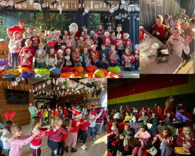 W poniedziałek 4 grudnia klasy 1-3 wybrały się na spotkanie z Mikołajem – do jego mikołajkowej chaty. Było to miejsce, gdzie mogliśmy podejrzeć ciężką pracę dzielnych pomocników Mikołaja, ale sami również wpadliśmy w wir świątecznej krzątaniny. Psotne Elfy zaraziły nas wyjątkową magią tego miejsca. Zabrały w niesamowitą podróż w czasie. Na początku uczestniczyliśmy w warsztatach robienia bombek, które zabraliśmy na pamiątkę do swoich domów. W warsztatach pomagały nam elfiki, które przez cały czas zabawiały nas różnymi śmiesznymi zabawami muzycznymi. Później udaliśmy się do „Krainy Marzeń”, w której oglądaliśmy fragmenty znanych bajek, stoczyliśmy bitwę na śniegowe kulki oraz mogliśmy wyczarować marzenia z baniek mydlanych. Atrakcją główną naszego wyjazdu było spotkanie z Mikołajem, który opowiedział o swojej pracy i rozdał dzieciom prezenty. Ostatnim punktem naszej wycieczki było udanie się do sali kinowej, gdzie mieliśmy okazję obejrzeć dwie bajki o tematyce świątecznej. Był to dzień pełen wrażeń. Dzieci wróciły do domu z pamiątkowymi bombkami, prezentami oraz świetnymi humorami.