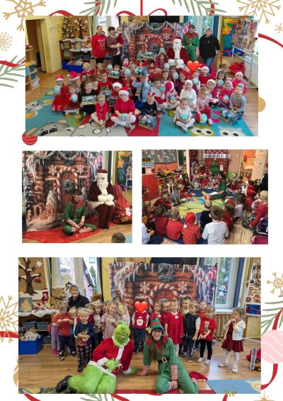 Wizyta Świętego Mikołaja w naszym przedszkolu, to jeden z najbardziej oczekiwanych przez dzieci dni w roku. Dzieci wyglądały Mikołaja już od rana. Wszystkie przedszkolaki bardzo przeżywały to spotkanie, szczególnie te, które pierwszy raz witały Mikołaja w przedszkolu. Aby podkreślić wyjątkowy charakter tego wydarzenia wszystkie dzieci miały na głowach mikołajowe czapeczki i świąteczne czerwone ubranie. Długo oczekiwany gość nie przyszedł jednak sam. Oprócz pełnego prezentów worka św. Mikołaj przywiózł w tym roku ze sobą pomocnika Grincha oraz panią Elfową.