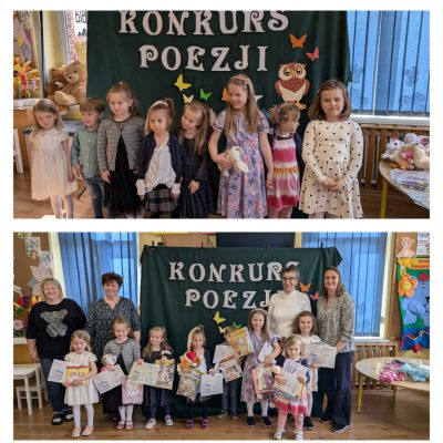 Serdecznie dziękujemy rodzicom za zaangażowanie oraz pomoc w nauce wierszy , a dzieciom za udział. Dziękujemy również Fili Biblioteki w Szemrowicach za zafundowanie nagród dla zwycięzców: w grupie ,, Misie " została wybrana Ania B. a w grupie ,, Odkrywcy" Martyna K. Zwycięscy z oby grup będą nas reprezentować na gminnym konkursie poezji w Dobrodzieniu.