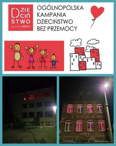 W dniach od 6 października do 19 listopada miała miejsce coroczna ogólnopolska kampania Dzieciństwo Bez Przemocy, która mobilizuje społeczeństwo do ochrony dzieci przed przemocą i budowania bezpiecznego, wspierającego dzieciństwa. W ramach kampanii uczniowie klas I-III naszej szkoły, pod kierunkiem szkolnego pedagoga, psychologa i pedagoga specjalnego, brali udział w ogólnopolskich lekcjach online - "Gadki z Maksem, czyli jak możesz dbać o swoje bezpieczeństwo", "Razem w klasie - o zasadach, które mają znaczenie", "Sieciaki.pl: Nadużywanie ekranów" oraz "Sieciaki.pl: Szkodliwe treści". 19 listopada w Międzynarodowym Dniu Przeciwdziałania Przemocy wobec Dzieci odbył się finał kampanii. Tego dnia na znak sprzeciwu wobec krzywdzenia dzieci fasady obiektów architektonicznych w całej Polsce rozświetliły się na czerwono. Iluminacja rozpoczęła się o godzinie 17.00 – nasza szkoła i przedszkole wzięły udział w wydarzeniu.