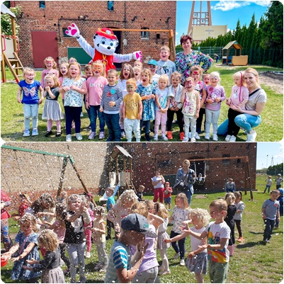 W naszym przedszkolu tego dnia nie zabrakło atrakcji. W tym roku Rodzice przedszkolaków postanowili zaprosić animatorów, którzy sprawili, że był to dzień wyjątkowy. Zabawy poprowadziła firma „Skeleton”, której towarzyszył Marschall z ulubionej bajki dla najmłodszych pt. „Psi patrol”. Tego dnia było stoisko z watą cukrową, popcornem, puszczanie baniek, zabawy z chustą animacyjną, malowanie tatuaży i twarzy dzieci, zaplatanie warkoczyków. Wszystko zorganizowane i poprowadzone przez Rodziców.