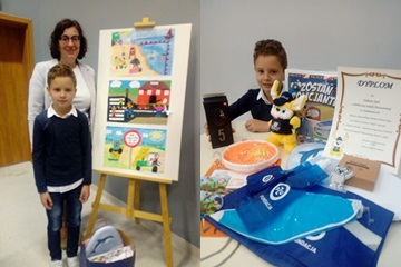 Spośród nadesłanych 401 prac wyłoniono 10 najlepszych, które posłużyły jako ilustracje do nowej edycji książeczki edukacyjnej "Pierwszaki". Wśród 10 laureatów znalazł się uczeń klasy drugiej Fabian S. Wręczenie nagród i dyplomów odbyło się w Wojewódzkim Ośrodku Ruchu Drogowego w Opolu.