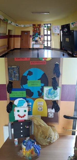 Dlatego wszystkie klasy od 1 do 8 wraz z wychowawcami , przygotowały pracę plastyczną o tematyce ekologicznej - z materiałów z recyklingu lub malując plakaty lub pisząc komiks , forma pracy dowolna . Prace zostały zaprezentowane na wystawie w holu szkoły .