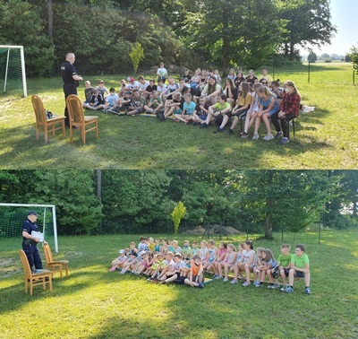 Dnia 18 czerwca tego roku w naszej szkole w Szemrowicach miało miejsce spotkanie z policjantem. Uczniowie z klas I-IV rozmawiali na temat „Bezpiecznych wakacji”. Natomiast starsi uczniowie z klas V- VIII omawiali temat „Bezpieczna woda”. Spotkanie odbyło się na świeżym powietrzu, a dzieci i młodzież czynnie uczestniczyli i rozmawiali z policjantem na dany temat.