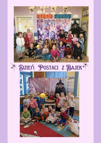 Międzynarodowy Dzień Postaci z Bajek obchodzony jest 5 listopada, w dniu urodzin Walta Disneya. Święto to upamiętnia postacie z bajek i baśni, które są nieodłącznym elementem dzieciństwa i rozwijają wyobraźnię. W tym dniu w naszym przedszkolu zorganizowane zostały zabawy, konkursy związane z ulubionymi bohaterami z książek i filmów. Dzieci przebrały się za ulubione postacie ze swoich bajek .W współpracy z filią biblioteczną w Szemrowicach pod kierunkiem pani Katarzyny Maciuch zostały przeprowadzone także w obydwu grupach warsztaty edukacyjne z bajką w roli głównej. Było dużo dobrej zabawy i wiele uśmiechu.