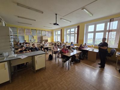 Dnia 24.10.2025 r. uczniowie klas 4-8 uczestniczyli w zajęciach pt. „Niepozorny zabójca” zorganizowanych przez Państwową Stację Sanitarno- Epidemiologiczną w Oleśnie. Zajęcia dotyczyły szkodliwości palenia papierosów.