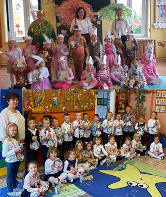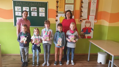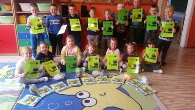 Grupa starsza pod kierunkiem wychowawczyni przystąpiła w tym roku do projektu ekologicznego organizowanego przez sieć sklepów Biedronka pod nazwą :”Szkolne przygody Gangu Fajniaków”. Jego celem jest pokazanie dzieciom magii natury, ucząc wrażliwości ekologicznej i troski o środowisko każdego dnia. W poznaniu 4 żywiołów pomagały dzieciom maskotki projektu –czyli Fajniaki. Grupa omówiła i zrealizowała wszystkie 4 moduły :ZIEMIA, OGIEŃ, WODA i POWIETRZE. Dzieci do każdego tematu wykonywały prace plastyczną . Fotorelacja z realizacji wszystkich zadań została przekazana do organizatora co otwiera nam drzwi do wzięcia udziału w konkursie o Grand Prix, a co za tym idzie walkę o cenne nagrody dla przedszkola i dzieci. Uroczyste zakończenie projektu w naszej placówce odbyło się 21 października br. Dzieci otrzymały pamiątkowe dyplomy i naklejki sponsorowane przez organizatora. Ostateczne rozstrzygnięcie konkursu projektu organizator zapowiada na 03. grudnia br. Trzymajcie za nas kciuki bo konkurencja jest ogromna. Dziękuje grupa 5,6 latków: ”Papużki” wraz z wychowawczynią.