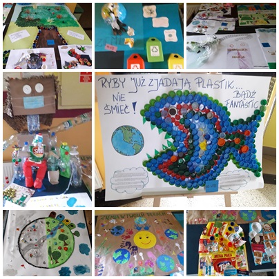 Dlatego w dniach od 21.09 do 25.09 2020 wszystkie klasy od 1 do 8 wraz z wychowawcami, przygotowały pracę plastyczną o tematyce ekologicznej –z materiałów z recyklingu lub malując plakaty a może pisząc komiks, forma pracy dowolna. Prace zostały zaprezentowane na wystawie w holu szkoły.