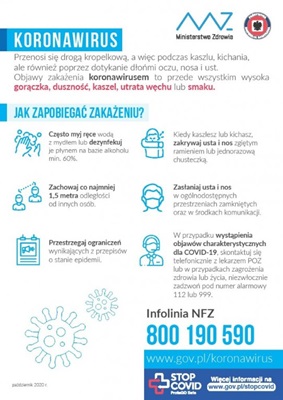 w związku z trwającą pandemią koronawirusa, Ministerstwo Zdrowia zaktualizowało pakiet materiałów z przydatnymi informacjami :