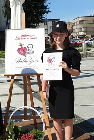Naszą szkołę reprezentowała uczennica klasy VII, Ania Gabor, która pięknie wcieliła się w dwie role z aktu II, sceny II znanego dzieła Juliusza Słowackiego pt.”Balladyna”. Najpierw więc odczytała kwestie Kirkora, a później tytułowej bohaterki. Jej występ spotkał się z dużą sympatią i z wieloma pochwałami zebranych wokół sceny słuchaczy.
