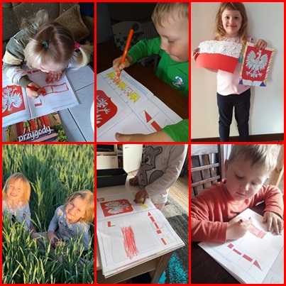 Wszystkie przedszkolaki omawiały w pracy zdalnej jak ważną rzeczą jest poznać swój kraj –swoją Ojczyznę. Poznawały symbole narodowe , słuchały hymnu Polski i wykonywały wiele prac plastycznych. Wcielały się nawet w rolę Syrenki , oraz słuchały wielu polskich baśni i legend takich jak: „Gniazdo białego orła”; „Legenda o smoku wawelskim”; „Złota kaczka”; ”Bazyliszek „ i inne . Spacerując podziwiały piękno swego kraju.