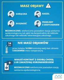 Jeśli w ciągu ostatnich 14 dni byłeś w północnych Włoszech, Chinach, Korei Południowej, Iranie, Japonii, Tajlandii, Wietnamie, Singapurze lub Tajwanie i zaobserwowałeś u siebie objawy, takie jak: gorączka, kaszel, duszność i problemy z oddychaniem, to