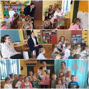 W trakcie spotkania burmistrz Gminy Dobrodzień opowiedział dzieciom o swojej pracy. Oprócz pytań, które dzieci zadawały naszemu gościowi była również gra pt. "kalambury" przygotowana specjalnie na ten wyjątkowy dzień. Dzieci rysowały, pokazywały i mówiły o zawodach a zadaniem burmistrza było odgadnięcie o jaki zawód chodzi.